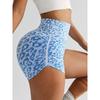 Explosive high-waisted belly-tucking leopard print yoga three-point pants women's buttocks lift tight running peach fitness shorts