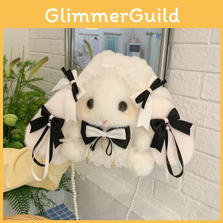 Lolita Bowknot Rabbit Plush Shoulder Bag With Pearl Chain For Daily Casual Use