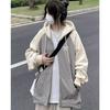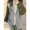 Women's Oversized Retro Color Block Patchwork Hooded Sweatshirt Jacket for Autumn