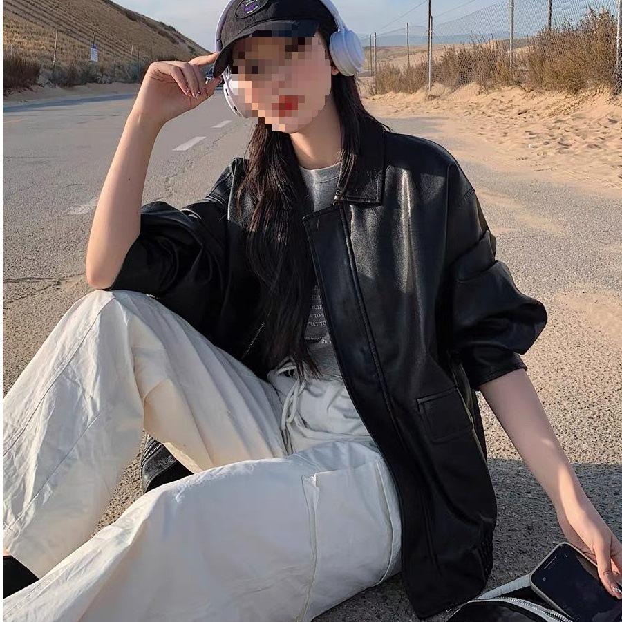 Women's Retro Brown Short Leather Jacket - 2026 Korean Style, Loose Fit, Cool Motorcycle Design for Spring/Autumn