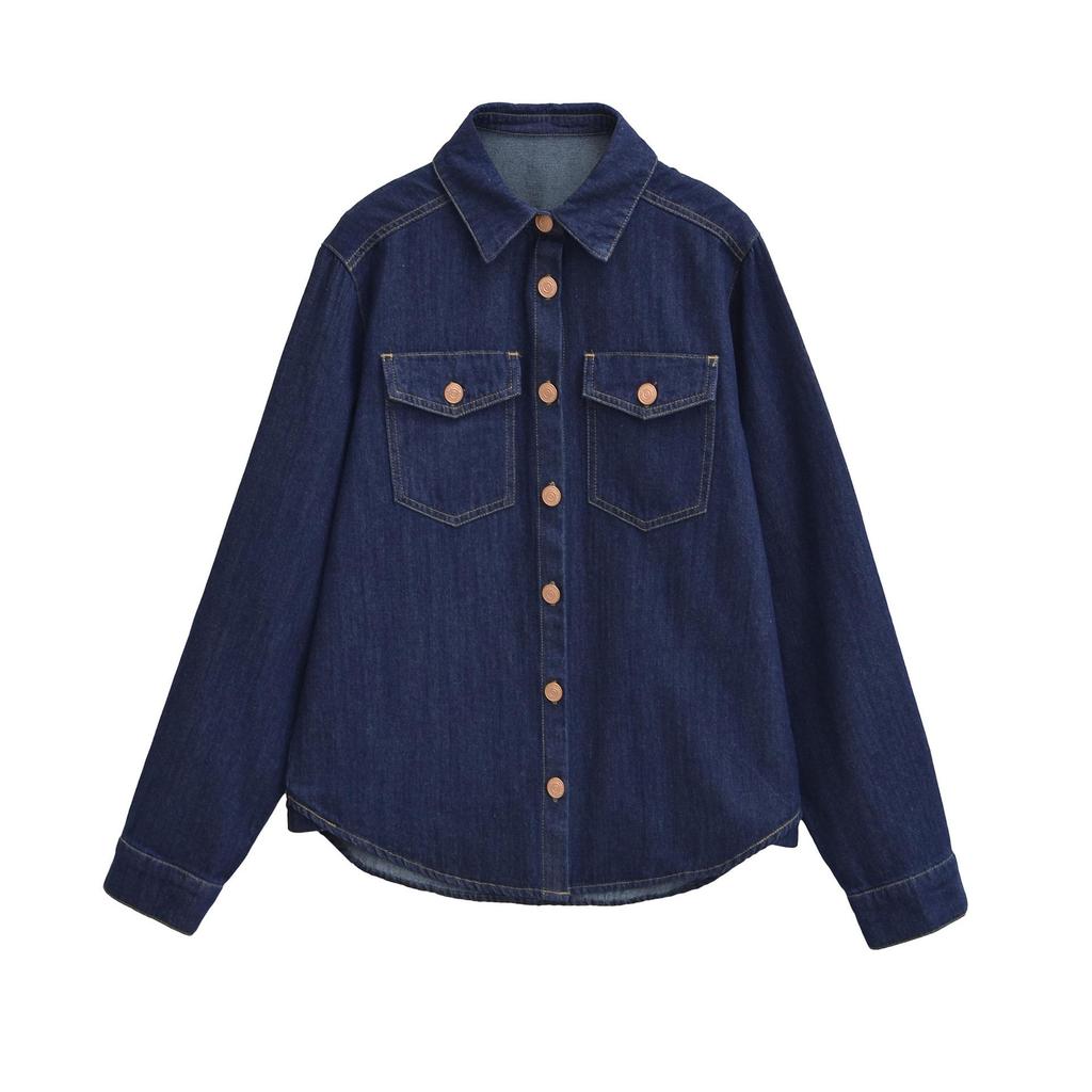 Discover the charm of early spring fashion with this European retro dark blue denim shirt, designed exclusively for women. Crafted from high-quality cotton, this shirt combines comfort and style effortlessly. Its loose fit offers a relaxed yet stylish silhouette, perfect for casual outings or layering. The tailor neckline and the unique lapel collar add a touch of sophistication, while the long sleeves provide versatility for transitional weather. This denim shirt is a must-have addition to your wardrobe, bringing a timeless and chic vibe to any ensemble.