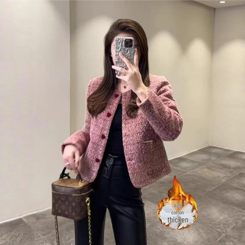 Embrace the fusion of style and comfort with this luxurious pink short jacket, designed for the modern woman who values both fashion and practicality. Perfect for the Winter-Autumn season, this piece features a chic Korean style that effortlessly elevates any wardrobe. Crafted from high-quality cotton, the jacket is adorned with a plush cotton fur, ensuring warmth and coziness. Its long sleeves provide additional protection against the cold, while the versatile round and stand neckline reflects a sophisticated, yet casual elegance. Ideal for both everyday wear and special occasions, this jacket is a must-have for fashion-forward individuals.