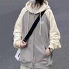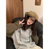 Women's Retro Color Block Patchwork Oversized Hoodie Jacket for Autumn