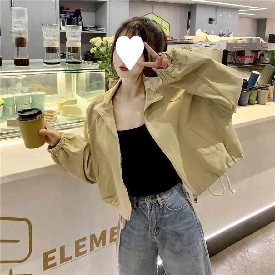 Spring 2023 Women's Trendy Loose-Fit Windbreaker: Slim Zipper, Long Sleeve, Windproof Short Coat.