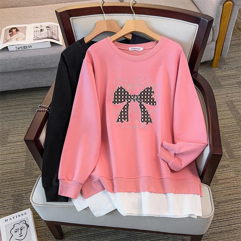 Stay cozy and stylish this autumn with this plus-size hoodie, designed for ultimate comfort and warmth. Made from high-quality cotton material, it features a thick texture to keep you snug in cooler weather. The loose fit and round neckline offer a relaxed and flexible wear, while the long sleeves provide additional coverage. Adorned with a charming bowknot decoration, this hoodie adds a touch of elegance to your casual wardrobe. Perfect for enjoying the crisp autumn days with ease and flair.