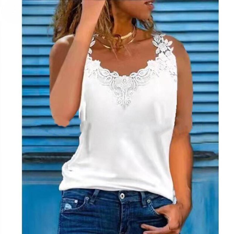 Kadın Moda Yelek Yaz Artı Boyutu Rahat Gömlek Dantel Dikiş Kolsuz Üstler