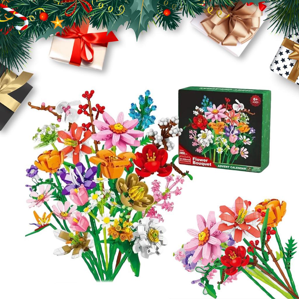 Christmas 24 Days Flower Bouquet Countdown Calendar W/24 Kind of Flower Flower Bouquet Building Blocks Set for Adults Teens Kids