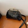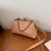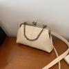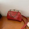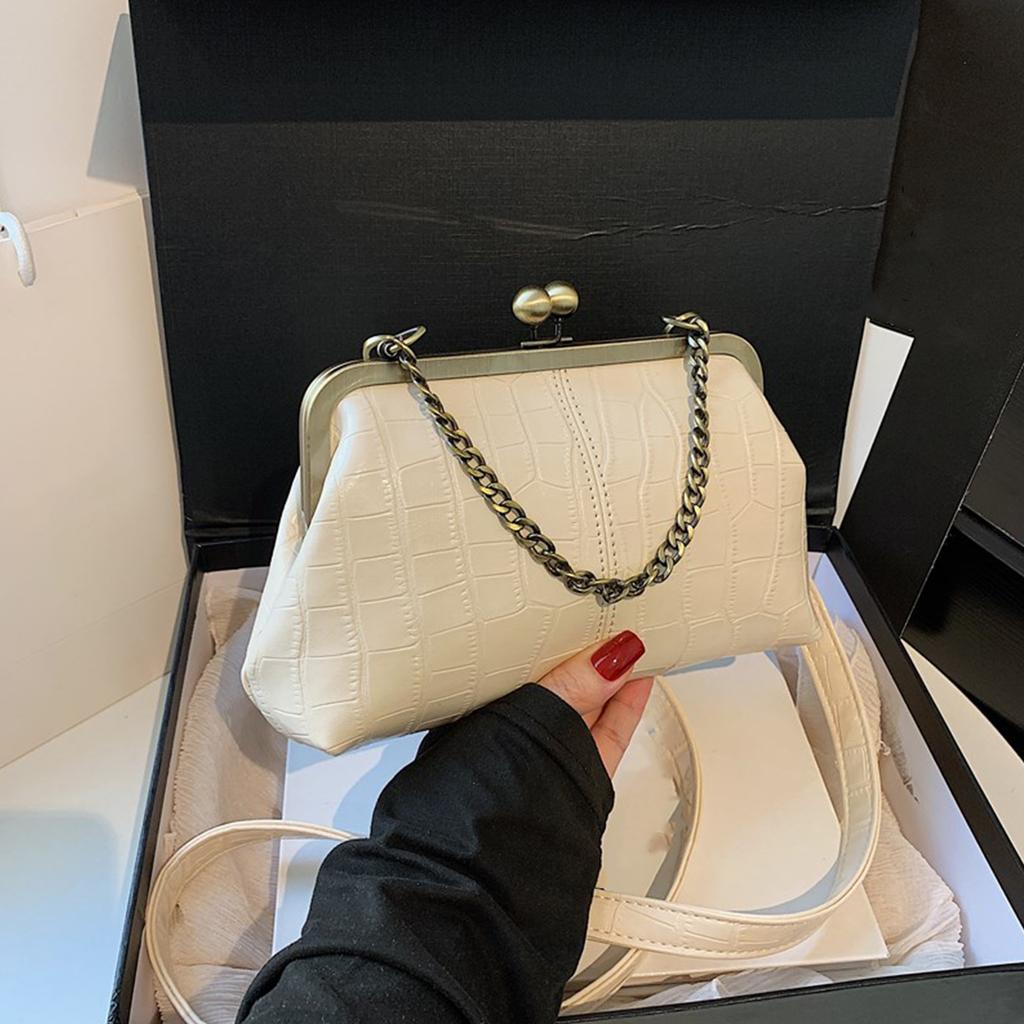 Women Girls PU Leather Kiss Lock Shoulder Bag One Shoulder Crossbody Bag Clip on Chain Handbag for Work School Travel Shopping