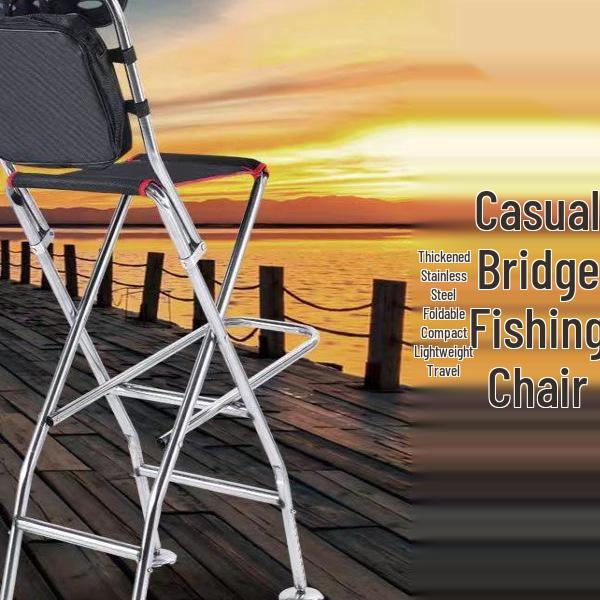 Foldable Stainless Steel Bridge Fishing Chair - Heightened Design for Raft and Bridge Fishing