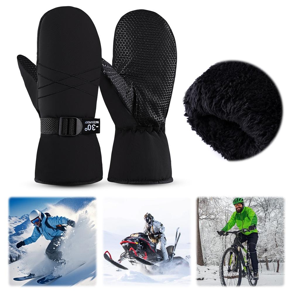 Ski Mittens Waterproof Snow Gloves Thermal for Men Women Windproof Lining Adjustable Wrist Strap Snowboarding Winter Gear
