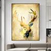 Modern Deer Elk Yellow Canvas Painting Nordic Animal Posters and Prints Wall Art Picture Cuadros For Living Room Home Decoration