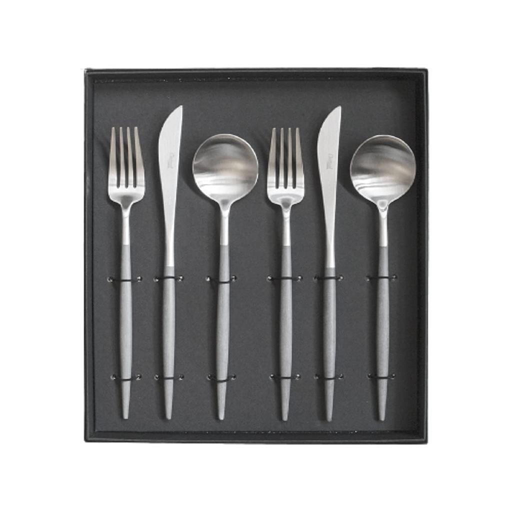 Cutipol GOA Silver Dinner 2 2 set in original presentation gift box Gray/Matte (2 knives, forks, spoons) 6-piece box, [ ]