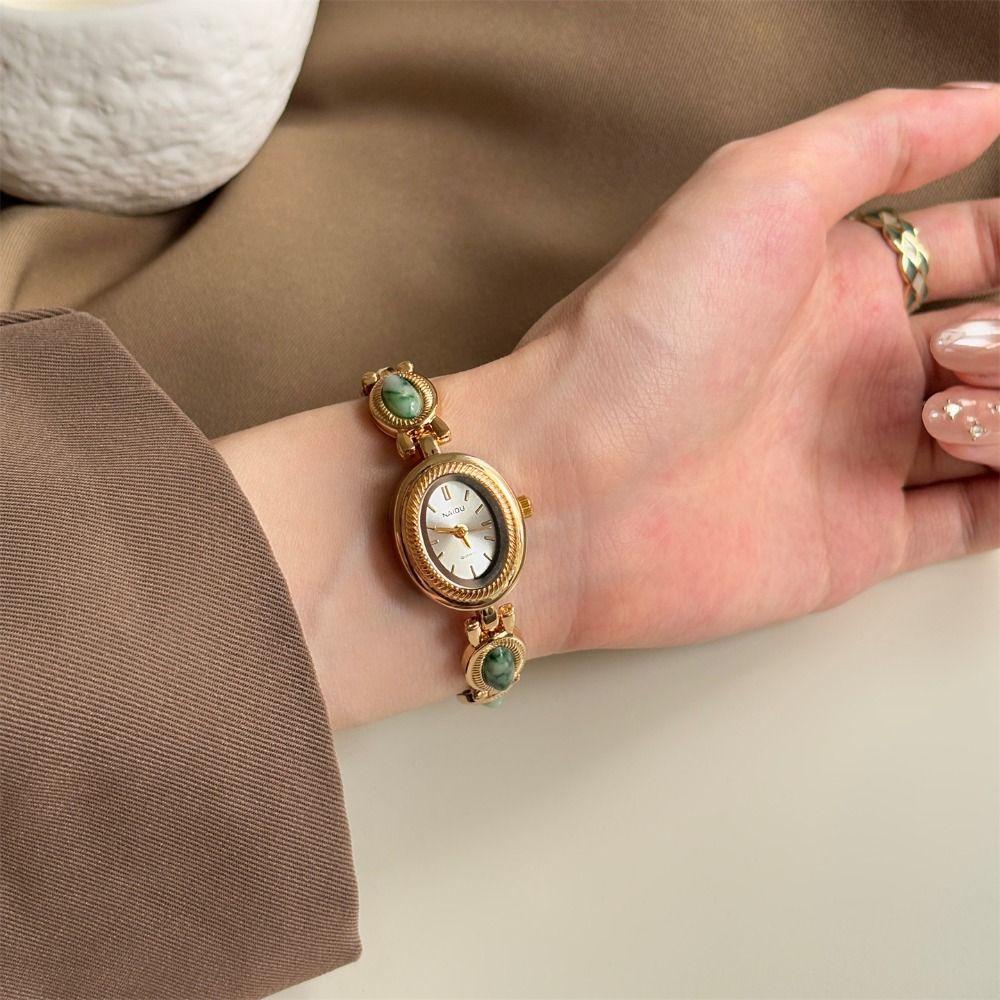 Oval Wristwatch Colored Gemstones Quartz Watch Vintage Ladies Watch