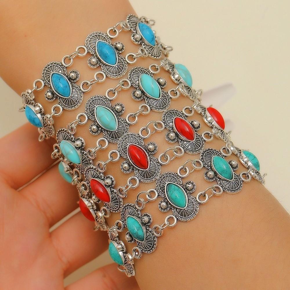 Tribal Turquoise Bracelet Ethnic Style Bohemian Bangles Exaggerated Wide Bangle Decoration