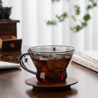 Küçük Kapasiteli Taze Çekilmiş Kahve Cam Kahve Kupası Ceviz Ahşap Saplı Ev Kahvaltı Süt Çay Fincanları ve Kupaları İçecek Kapları