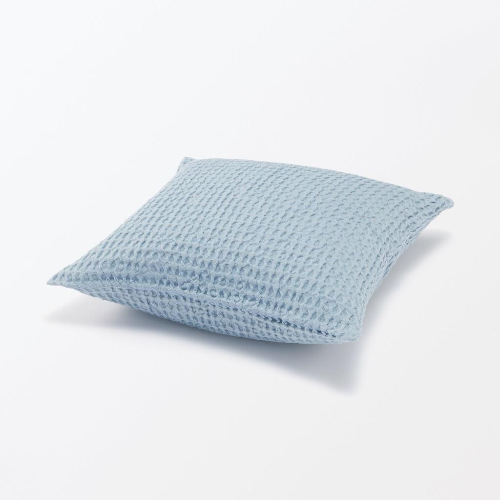 MUJI Indian Cotton Washed Waffle Weave Cushion Light 76420149 Cover, 43x43cm, Blue,