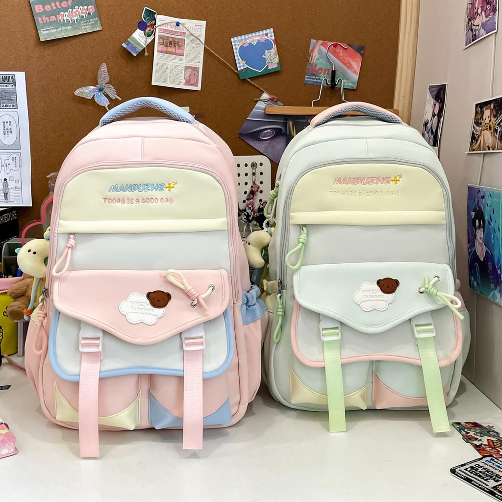 Junior high school student schoolbag female cute color matching large-capacity computer backpack practical thickened wear-resistant casual backpack