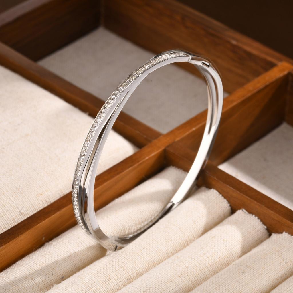 Trendy Crossed Cubic Zirconia Stones Bangles Women Girls Stainless Steel Layered Cuff Hand Bracelets Jewellery Accessories