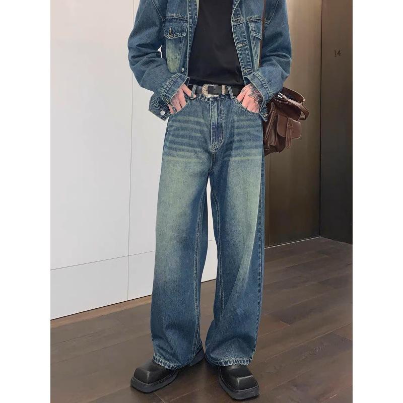 JYL Men's Straight Jeans Niche Vintage Loose Casual High-Street Trendy Denim Pants