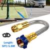 4,HEAVY-DUTY 304 STAINLESS STEEL BUILD: Constructed from durable 304 stainless steel to handle high water pressure and daily wear. Scratch-resistant, bite-resistant, and built to resist crushing without leaking. Kink- and tangle-free design keeps your RV, boat, or campsite setup neat and reliable.