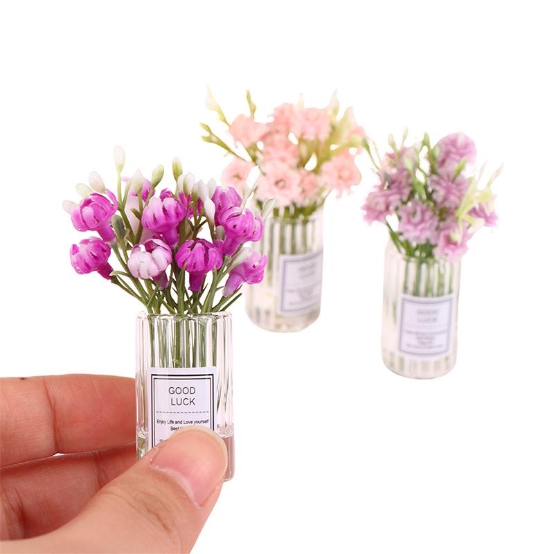 1/6 8 Dollhouse Miniatures Glass Vase Model Doll House Accessories Decor Toy Green Plant Ornaments Gifts Crafts