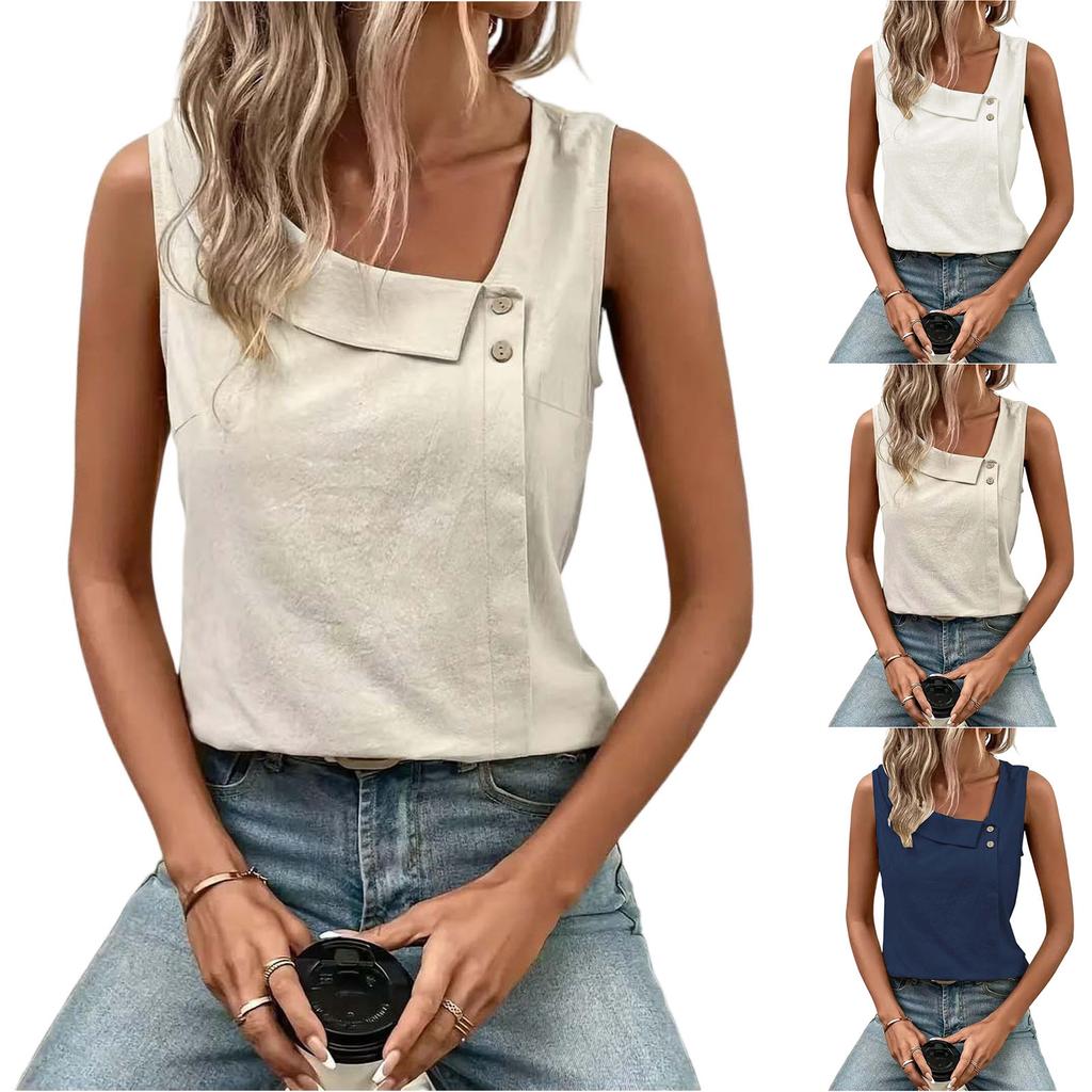 Women's Casual Fashion Sleeveless Button-Down Top Vest T-Shirt