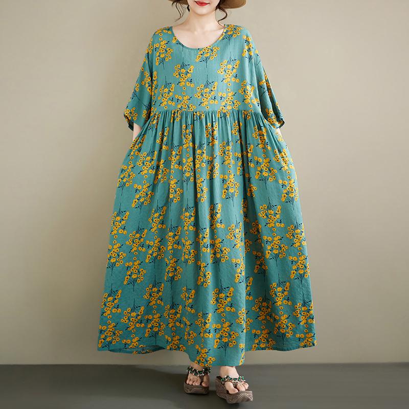 Kısa kollu Artı boyutu pamuklu vintage çiçekli yeni elbiseler kadınlar için gündelik gevşek uzun yaz