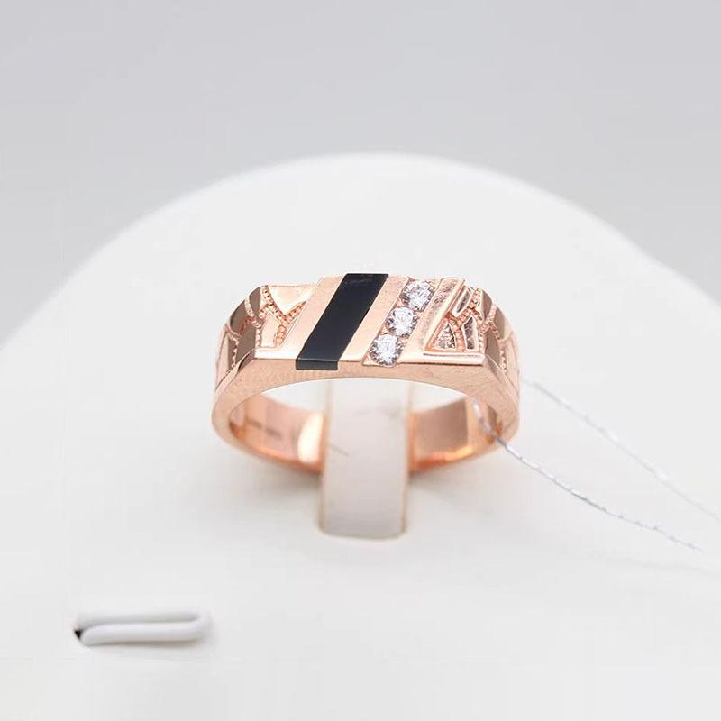 Russia 585 Purple Gold Rhombus Men'S Ring Black Agate Ring Rose Gold Plated Boyfriend Wedding Ring