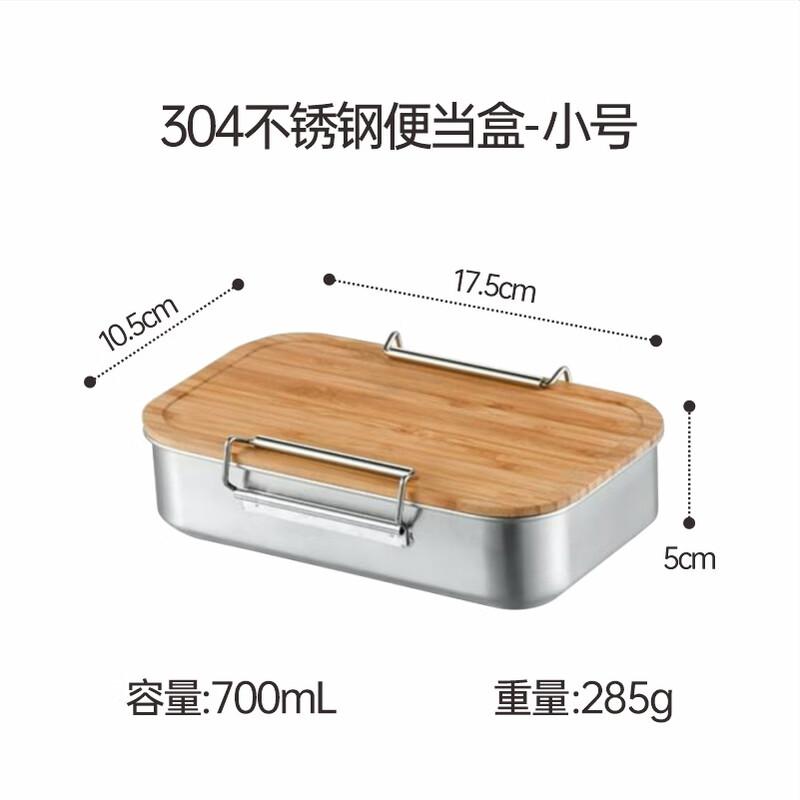 Portable 304 Stainless Steel Square Lunch Box with Bamboo Lid