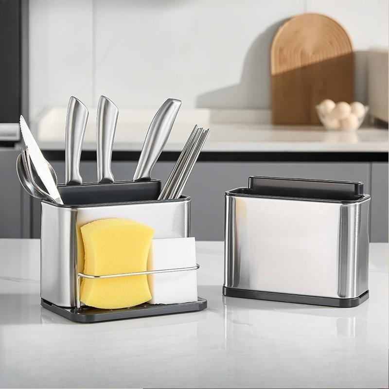 Stainless Steel Kitchen Utensil Storage Rack Kitchen Countertop Cutlery Drainer Sponge Holder