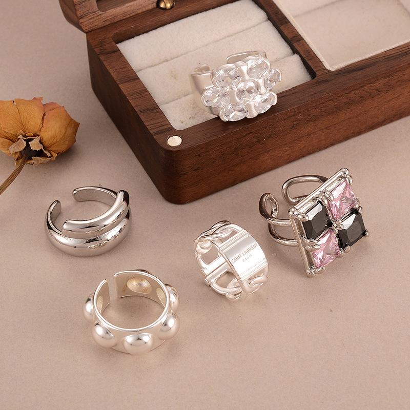 Cold wind geometric ring does not fade ins hollow lines European beautiful woman jewelry retro ring