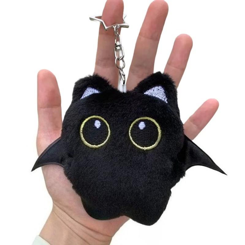 Black Cat Plush Keychain Ghost Wing Cute Kitty Key Chain Stuffted Toy Pendant Lovely Backpack Accessories Kawaii Bag Pendant