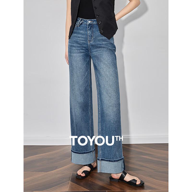Chuyu Women's Retro Wide-Leg Cuffed Jeans
