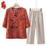 Mid-Aged Women's Summer Floral Blouse Set