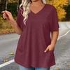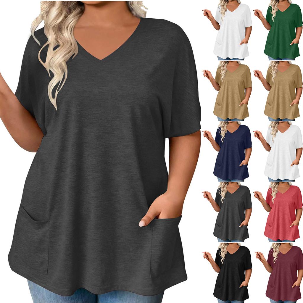 Stylish Women's Color V-neck Pocket Casual Versatile Fashion T-shirt Top