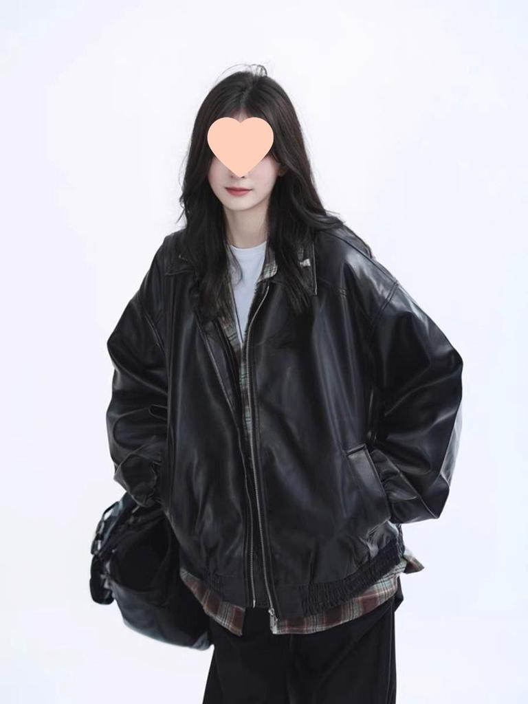 Unisex Retro American Style Leather Jacket with Velvet Lining for Autumn and Winter