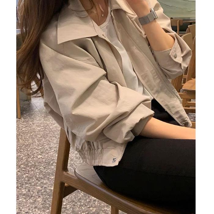 Elevate your wardrobe with this chic and versatile short jacket, perfect for both spring and autumn. Made from high-quality cotton, this jacket offers a comfortable and stylish fit. Its design features long sleeves and a unique combination of both round and stand necklines, providing a contemporary twist to a classic look. Inspired by Korean fashion, this elegant plain color jacket is perfect for casual occasions, offering both simplicity and sophistication in a single piece.
