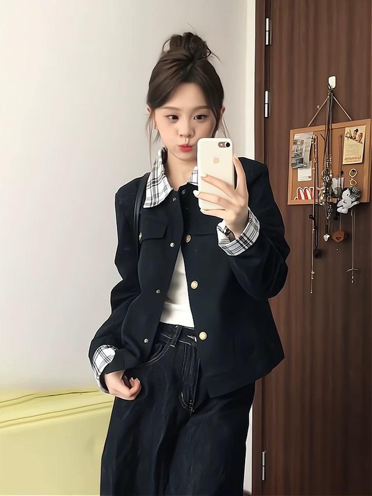 Elevate your style with this chic plaid jacket, perfect for the spring and autumn seasons of 2025. Crafted from a comfortable spandex blend, this jacket offers a modern look with its long sleeves and a sophisticated turn-down collar. Designed specifically for petite frames, it effortlessly combines fashion and function, making it an essential addition to your wardrobe.