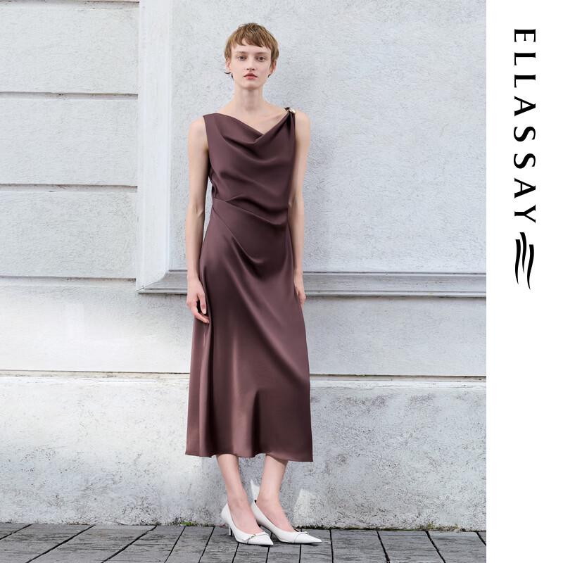 ELLASSAY 2026 Summer Triacetate Cowl Neck Satin Dress
