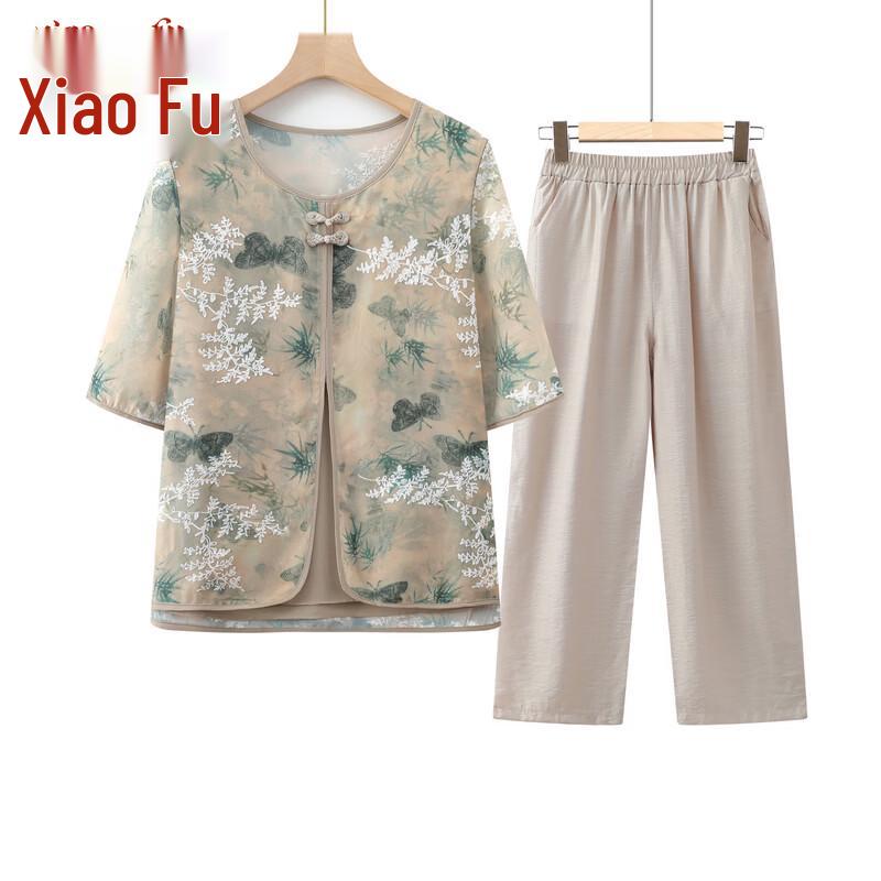 Elderly Women's Half-Sleeve Faux Two-Piece Outfit