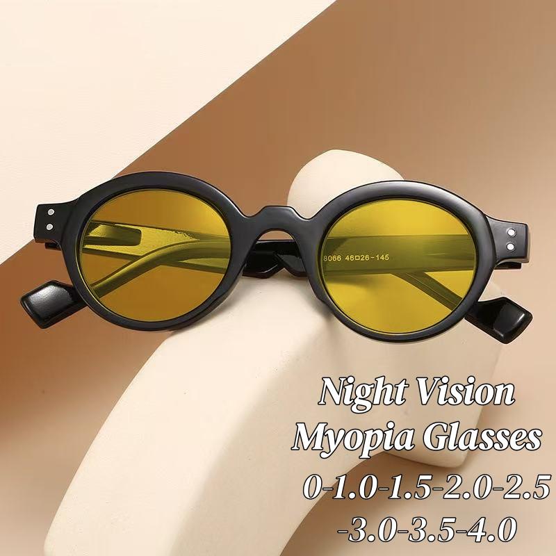 Retro Classic Round Frame Night Vision Myopia Glasses Women Men New VintageYellow Lens Near Sight Glasses for Anti High Beam