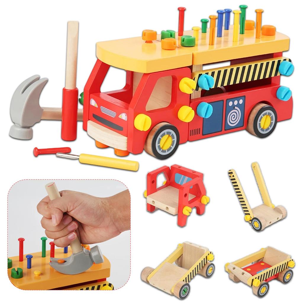 [Fun building skills] Use a screwdriver and hammer to combine the fire truck's included parts to create a cute and unique model, or enjoy hammering and pulling nails. Try building a variety of shapes, including a table, sofa, racing car, and mine cart. This educational toy will help develop dexterity and muscle strength while you play, stimulating your child's creativity and supporting their development.