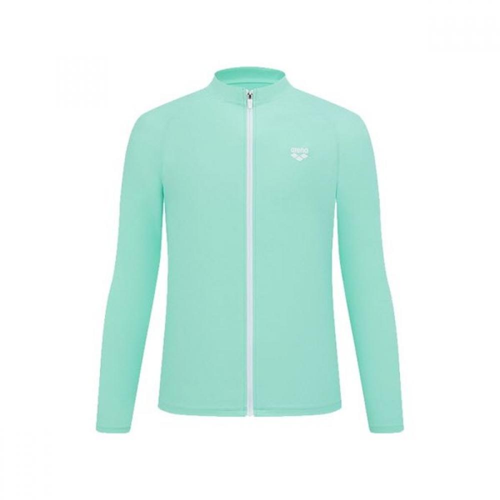 The Arena Men's Core Regular Fit Zip-Up Rash Guard (A6BM1RR41_MNT) is designed for a comfortable fit and is made from stretchy fabric, making it ideal for an active swimming environment. This rash guard features UV protection, providing excellent coverage outdoors during the summer. Its zip-up design makes it easy to put on and take off, and it can be utilized for various water sports activities beyond regular swimming.