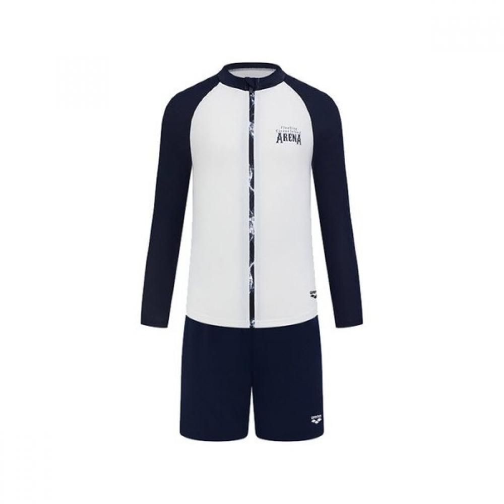 The Boy's Joy Rib Zip-Up Rash Guard Set is a swimsuit designed for children, suitable for active water play. This product offers a comfortable fit and excellent stretch, providing body protection while allowing for free movement. The zip-up design makes it practical for easy wear and removal.