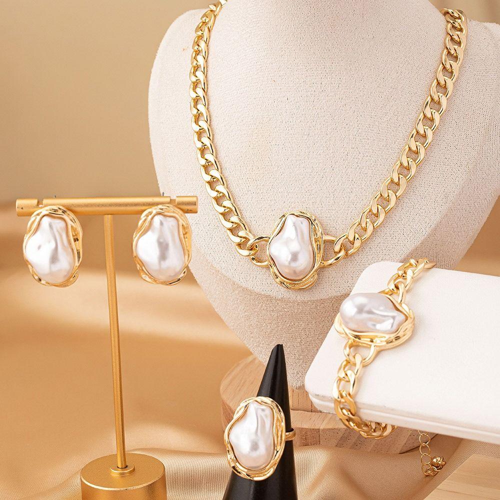 5Pcs Irregular Vintage Jewelry Suit Pearl Necklace Bracelet Ring Suit Clavicle Chain Set Girls