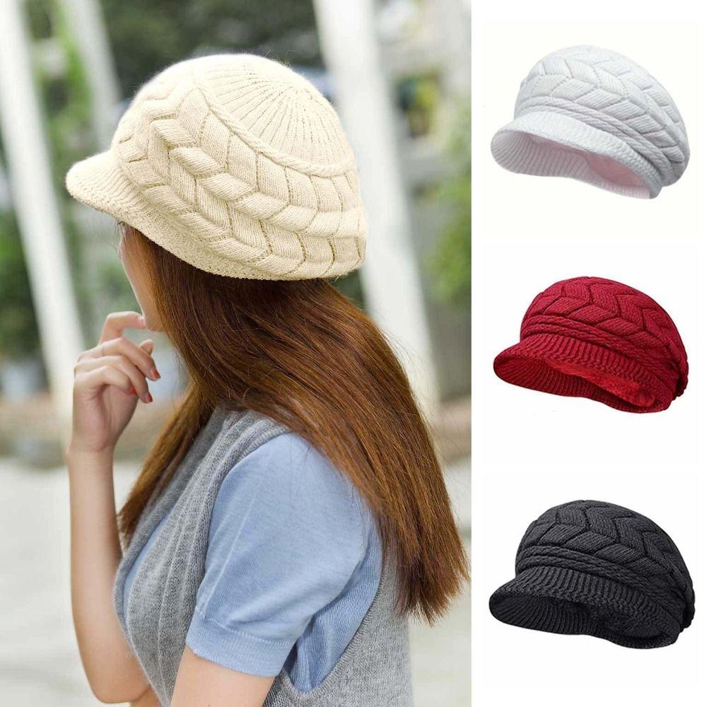 Ear Protection Women Beret Cap Winter Thicken Knit Hat Striper Knitted Cap Autumn Winter