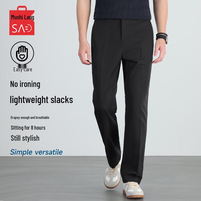 MUSHILANG Men's Anti-Wrinkle Straight-Leg Trousers