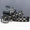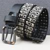 Rivet Belt Genuine Leather Double Pin Buckle Belt Classic Hollowed Out Strap Jeans Cowhide Men Waistband Width:3.8cm