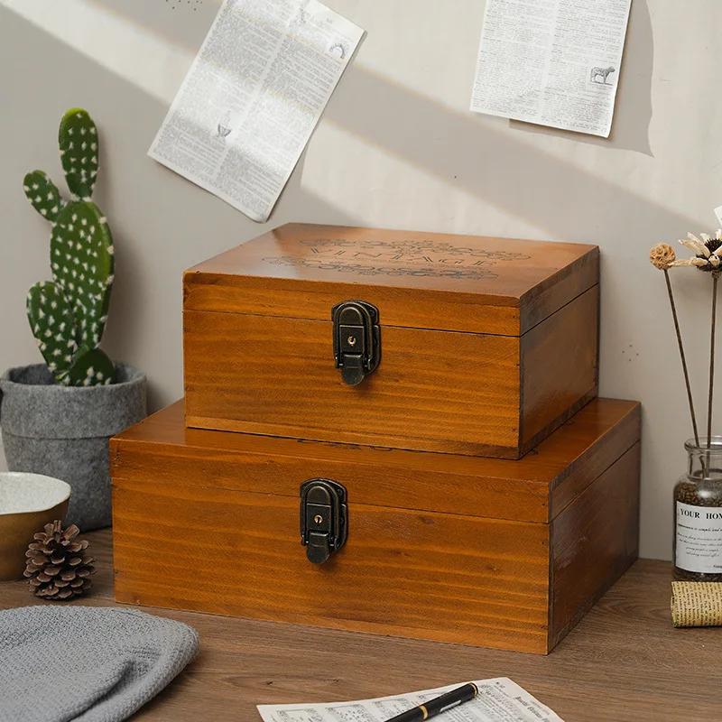 Kilitli saklama alanına sahip Vintage masif ahşap özel koleksiyon hatıra kutusu Belge düzenleyici saklama Ahşap mücevher kutusu
