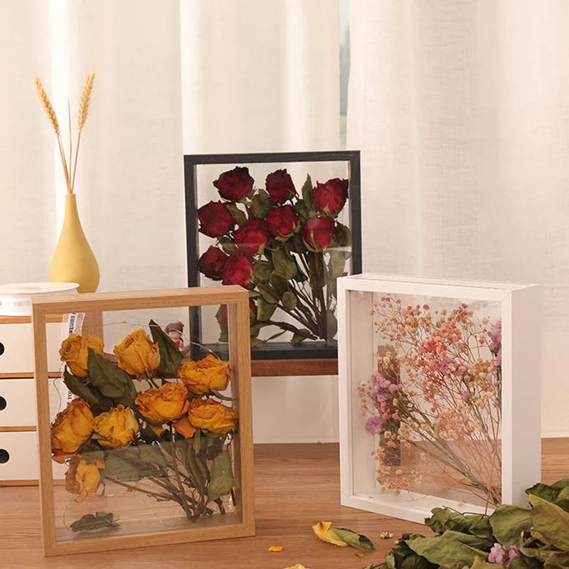 4cm deep6“/7”/8“/10” Transparent Flower Wooden Frame Dried Flower Rose Flower Preservation DIY Photo Display Box Home Decoration